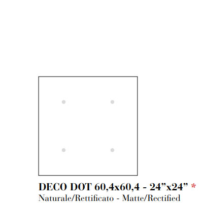 These concrete-effect tiles are inspired by a particularly “rich” architectural cement, used by some of the great names in contemporary architecture to construct and transform spaces. In fact, the distinctive feature of this exposed concrete is the DOT, that is the point left by the matrix on concrete, creating a geometric pattern on the entire surface.